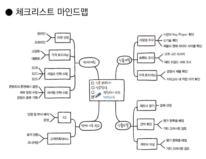 아래는 일일업무계획과 체크리스트, 사업 아이디어에 각각 마인드맵을 적용해본 예시입니다.