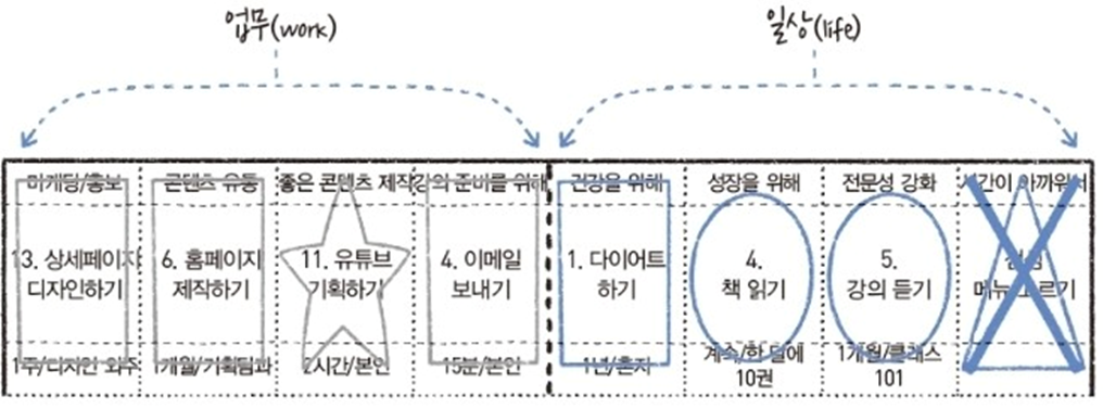 시간, 목표, 문제를 정리하는 방법은 다음 리뷰에서 계속 알아보겠습니다.