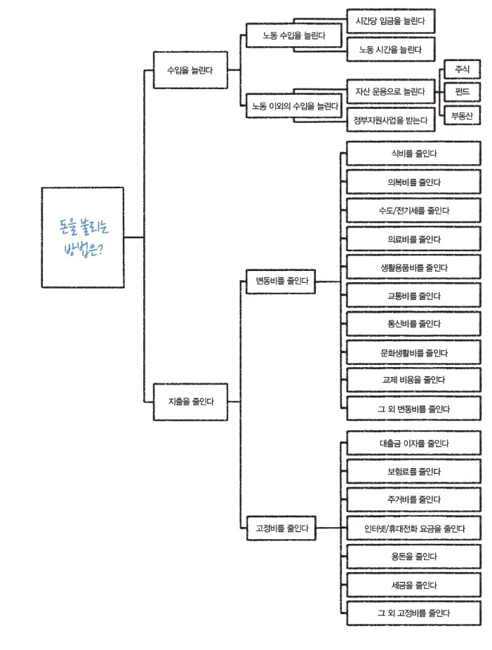 생각정리가 돈관리에도 도움이 될까요? 저자는 그렇다고 말합니다. '돈을 만드는 로직트리'를 살펴봅시다.