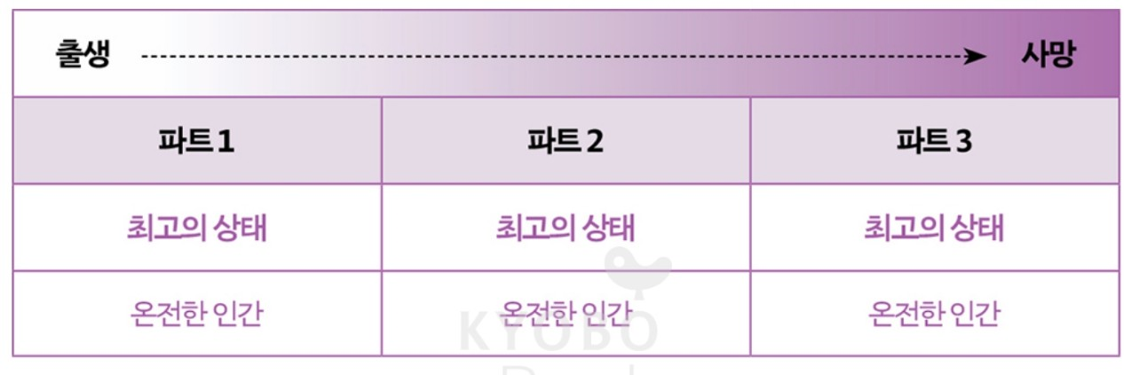 그리고 인생의 단계를 어떻게 생각하느냐는 인생의 결과물을 다르게 만듭니다. 보통 우리는 인생의 단계를 아래처럼 생각하기 쉽습니다.