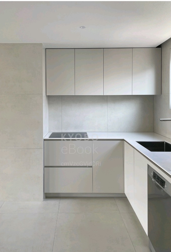600각 이상 타일은 기본 사양보다 비싸고, 주방 가구의 서라운딩을 없애기 위해서는 천장면의 수직 수평이 잘 맞아야 하는데 구축 아파트의 경우 그렇지 않은 경우가 많습니다. 목공사 때 천장을 새로 해야 한다는 뜻입니다. 결국 돈을 들여야 예쁘게 된다는 뜻입니다.